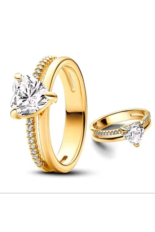 Çift Şeritli Kalp Yüzük ile cesurca sev.; ; Bu 14 ayar kaplama yüzük, birkaç yerde birbirine bağlı iki şerit ile benzersiz bir tasarıma sahip: bir düz cilalı şerit ve ön yarısına kadar pavé bulunan diğer şerit.; ; Ortasında, göz alıcı bir ifade yaratan ışıltılı kalp şekilli kübik zirkon taş bulunuyor.; ; Kalbinin sahibine zarif bir hediye olacak modern ve klasik bir parça.;