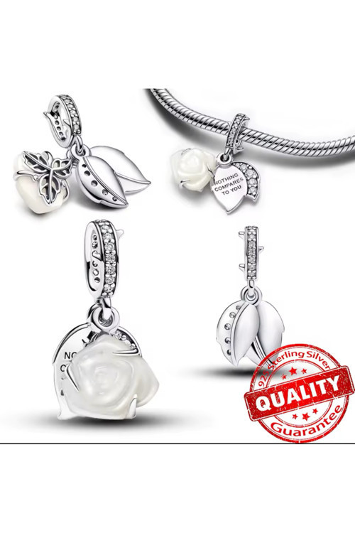 925 ayar gümüşten üretilen sevgi ve sembolizmle dolu Açan Beyaz Gül Çift Sallantılı Charm ile zarafeti kucakla. Zarif bir şekilde tasarlanan charm, beyaz biyo-reçine insan yapımı sedef gül içeriyor ve katmanlı yaprakları açan çiçeğin özünü yakalıyor. Şeffaf kübik zirkon ile süslenen bu charm, sevgiyi ışıltılı biçimde kutluyor.