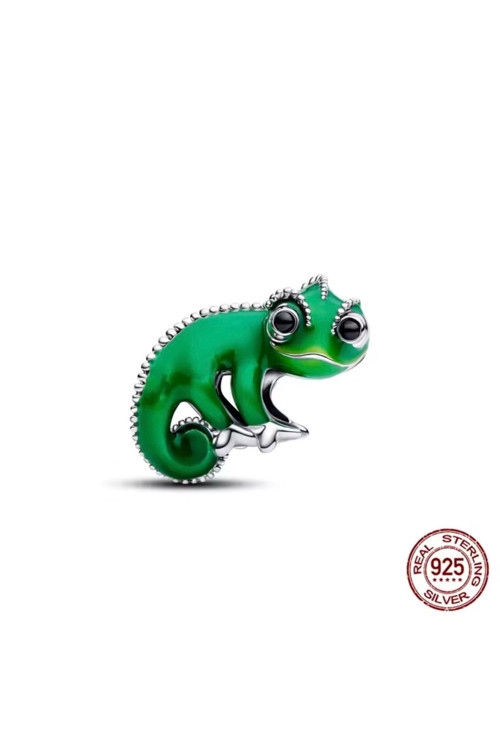 - Yeşil renk seçeneğiyle dikkat çeken bu charm, Rapunzel ve Pascal figürleriyle temalı bir tasarıma sahiptir.