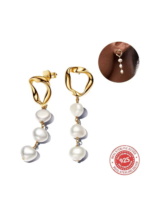 Barok İşlenmiş Tatlı Su Kültür İncileri Damla Küpeler ile yeni bir klasik sunuyoruz. Her küpede, farklı kalınlıklarda organik görünümlü kaplama halkadan sallanan üç adet barok işlenmiş tatlı su kültür incisi bulunuyor. Her işlenmiş tatlı su kültür incisi benzersizdir, boyut ve renkte farklılık gösterebilir.
