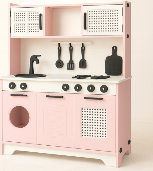 Hedefixtoys Pembe Ahşap Oyuncak Mutfak Seti – 12 Parça Aksesuar Dahil | Çocuk Oyun Mutfağı, Sağlam Ahşap Tasarım