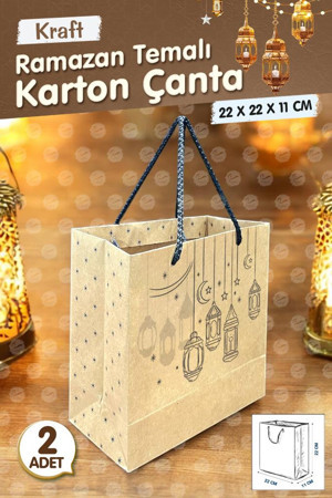 Kraft Karton Çanta Ramazan Fener  Desenli Hediye Paketi Çanta Poşet 2'li 22*22*11cm  Ramazan Hediye-T1164 - Image 1