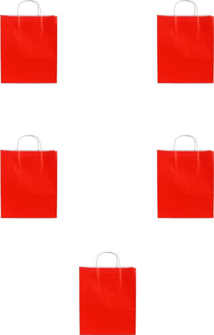Omeyva Büküm Saplı Kraft Kağıt Çanta Karton Hediyelik Poşet Torba - Kırmızı - 18x24 Cm. - 5 Adetlik Paket