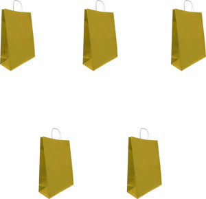 Omeyva Büküm Saplı Kraft Kağıt Karton Hediyelik Çanta Poşet Torba - Altın - 25x31 Cm. - 5 Adetlik 1 Paket