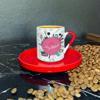 Modern tasarımıyla dikkat çeken kırmızı Türk kahvesi fincanı, günlük kullanım için ideal bir seçenektir