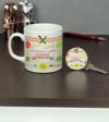Çocukların eğitimine destek olmak için özel olarak tasarlanmış, öğretmen temalı kupa bardak ve anahtarlık seti
