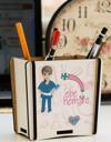 Dikdörtgen şeklinde olan kalemliğin ön ve arka yüzü baskılıdır.