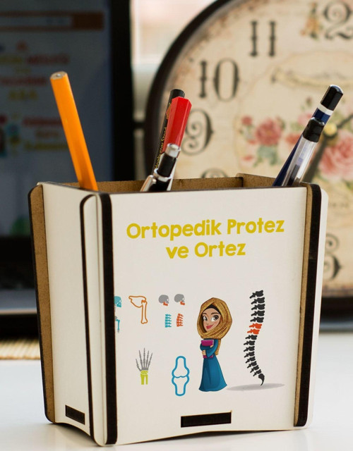 Dikdörtgen şeklinde olan kalemliğin ön ve arka yüzü baskılıdır.