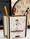 Dikdörtgen şeklinde olan kalemliğin ön ve arka yüzü baskılıdır.
