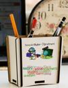 Dikdörtgen şeklinde olan kalemliğin ön ve arka yüzü baskılıdır.