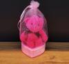 Tül kese içinde bulunan sevimli pembe mini ayıcık şık bir görünüme sahiptir.