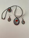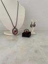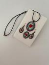 İznik el yapımı lale figürlü çini kolye-küpe-yüzük setinizle şıklığınızı tamamlayacaksınız. Lale figürlü çini set modeli mor, kırmızı, yeşil, siyah renk detaylarındadır. Ürün antik bakır renk detaylıdır. Set içinde 1 adet kolye, 1 çift küpe, 1 adet yüzük bulunmaktadır. Ürün el yapımı çini modeldedir. Kolye sallantılı modeldir. Kolye ucunda mor, kırmızı, yeşil, siyah renk detayları vardır. Kolye siyah deri iplidir. Küpenin metal kısmı da antik bakır renk detaylıdır. Yüzük antik bakır renk detaylıdır ve parmağa göre ayarlanabilir modeldir. Ürünün arka kısmı görseldeki gibidir. Ürün el yapımı çini olması sebebiyle görseldekinden biraz farklı tonda da gelebilir.