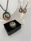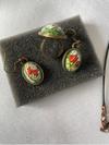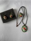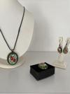 İznik el yapımı çini kolye-küpe-yüzük setinizle şıklığınızı tamamlayacaksınız. Ürün altın bakır renk detaylıdır. Set içinde 1 adet kolye, 1 çift küpe, 1 adet yüzük bulunmaktadır. Ürün el yapımı çini modeldedir. Kolye sallantılı modeldir. Kolye ucunda sarı renk detay vardır. Kolye siyah deri iplidir. Küpenin metal kısmı da altın bakır renk detaylıdır. Yüzük altın bakır renk detaylıdır ve parmağa göre ayarlanabilir modeldir. Ürünün arka kısmı görseldeki gibidir. Ürün el yapımı çini olması sebebiyle görseldekinden biraz farklı da gelebilir.