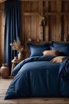 Lacivertin asil görünümü, %100 pamuk kumaşın doğal dokusuyla birleştiğinde gece boyunca huzurlu ve konforlu bir uyku alanı yaratır.