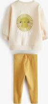 "Hello Sunshine" Baskılı Eşofman Takımı – Krem Üst & Sarı Alt