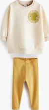 "Hello Sunshine" Baskılı Eşofman Takımı – Krem Üst & Sarı Alt