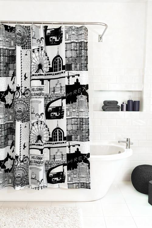Bu şık siyah-beyaz duş perdesi, modern şehir silüetleri ve ikonik simgelerle dikkat çekiyor. Helsinki ve diğer şehir мотивlerini andıran desenler, banyo dekoruna sofistike bir hava katıyor. Kalın hatlar ve kontrast renklerle dinamik bir görünüm sunan perde, hem estetik hem de fonksiyonel bir tercih.