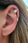 Hem earcuff hemde sıkıştırmalı kıkırdak küpesi el isi manolya gümüş altın kaplama tek küpe