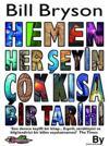Bill Bryson 'Hemen Her Şeyin Çok Kısa Bir Tarihi' ile okuru bilimin yanıtlamaya çalıştığı en ilginç ve önemli soruların peşinde eşi görülmemiş bir yolculuğa çıkarıyor. Büyük Patlama'dan (Big Bang) uygarlığın doğuşuna kadar evrende meydana gelen olayları etkileyici bir dille anlatan yazar, 'Hiç olduğumuz bir noktadan bir şey olduğumuz bir noktaya nasıl geldiğimizi, sonra o şeyin bir kısmının nasıl olup da bize dönüştüğünü ve o zamandan bu yana neler olup bittiğini', ilginç anekdotlar ve bilimsel keşif öyküleriyle aktarıyor. Uzun zaman geçerli kabul edilmiş ilginç kuramları ve tesadüf eseri yapıldığı halde bilimin gelişiminde yön vermiş keşifleri öğrenme fırsatı bulacağınız kitap; Kozmosta Kaybolmak, Yerkürenin Büyüklüğü, Yeni Bir Çağ Doğuyor, Tehlikeli Gezegen, Yaşamın Kendisi ve Bize Giden Yol olmak üzere altı ayrı bölümden oluşuyor.