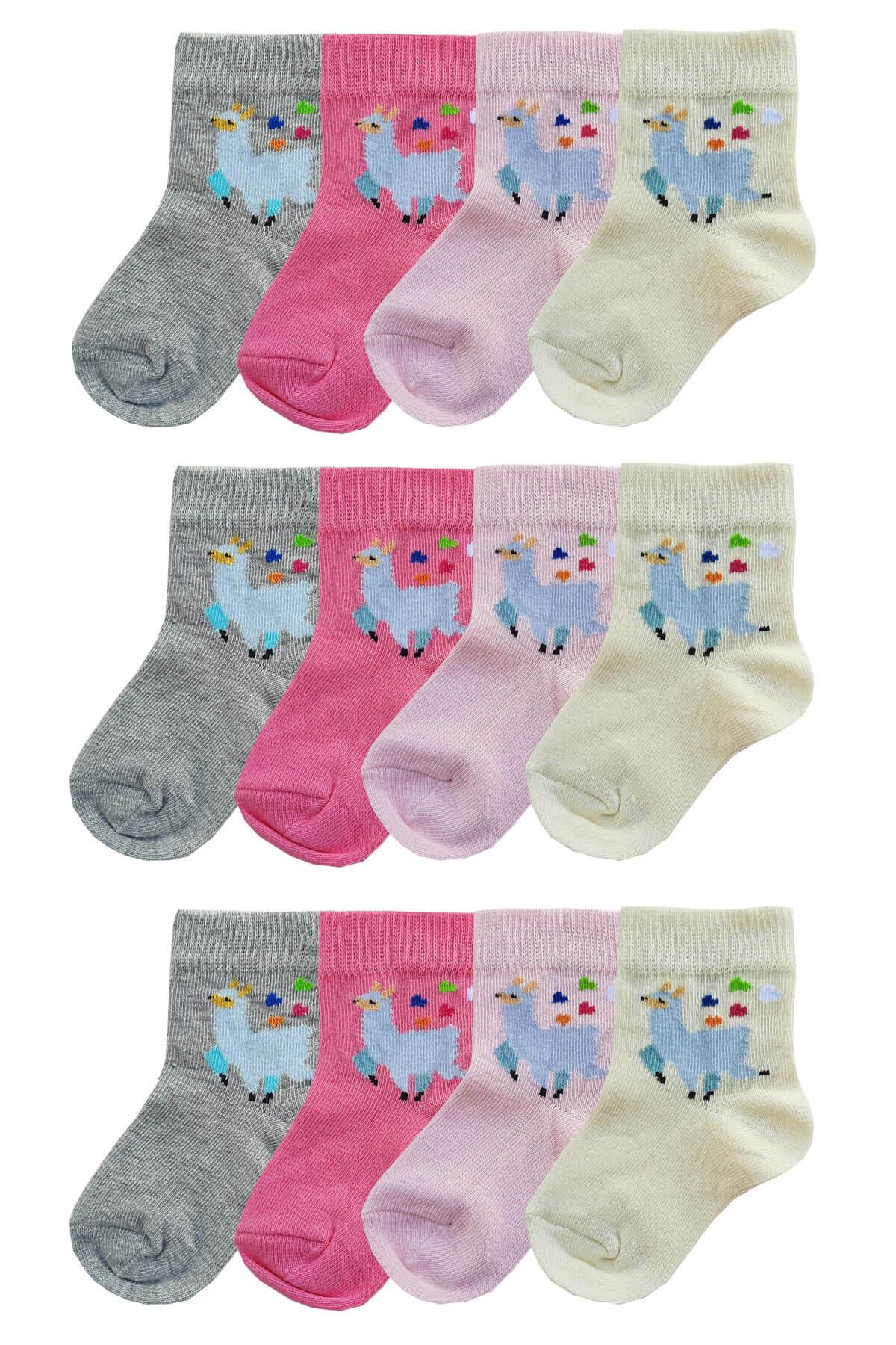 12li Kız Bebek Soket Çorap Renkli Desenli Ekonomik Çorap