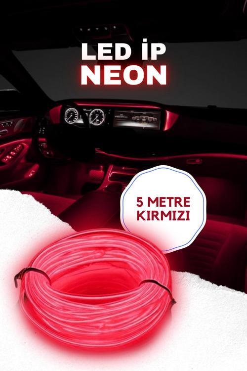 Her Araca Uyumlu Universal İp Neon Led - Kırmızı Renk 5 Metre 12V