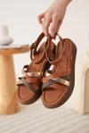 Herry Taba Altın Detaylı Hakiki Deri Sandalet