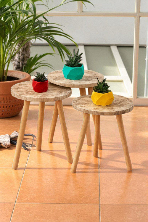 HESAWOOD Mermer 3'lü Ahşap Saksılık Çiçek Standı Ham Ayaklı Dekoratif Yan Sehpa Zigon Seti 33 Cm Çap Ev için. Evinizin her alanında dekoratif olarak kullanabilirsiniz. Çiçeklik, damacana, abajur vb. eşyalarınızı koyabilirsiniz. Ürünün ayakları %100 doğal ahşaptan üretilmiştir. Sehpamızın yüzeyinde 18mm kalınlığında 1. Kalite yonga levha kullanılmıştır. TSE, Avrupa birliği en, ISO 9001 ve FSC sertifikalarına sahiptir. E1 standartları dahilinde, kanserojen madde içermez. Üzerindeki ve çevresindeki objeler fiyata dahil değildir.