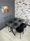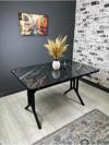 Hey Sultan Siyah Mermer Mutfak Yemek Masası Balkon Masası Kavisli Köşe Metal Siyah Ayak 120*80 Cm