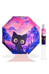 Uniquetrenders Kedi Desenli Canlı Lüx Baskılı Rüzgara Dayanıklı 8 Telli Katlanabilir Manuel Şemsiye Siyah  - Image 1