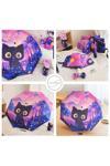 Uniquetrenders Kedi Desenli Canlı Lüx Baskılı Rüzgara Dayanıklı 8 Telli Katlanabilir Manuel Şemsiye Siyah