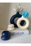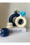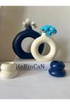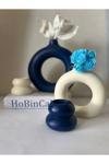Lacivert-Krem Halka Bohem Vazo Mumluk Seti 2'Li Dekoratif Donut Obje