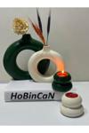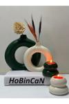 Heykelcan Yeşil Halka Bohem Vazo Mumluk Seti 2'Li Dekoratif Donut Obje