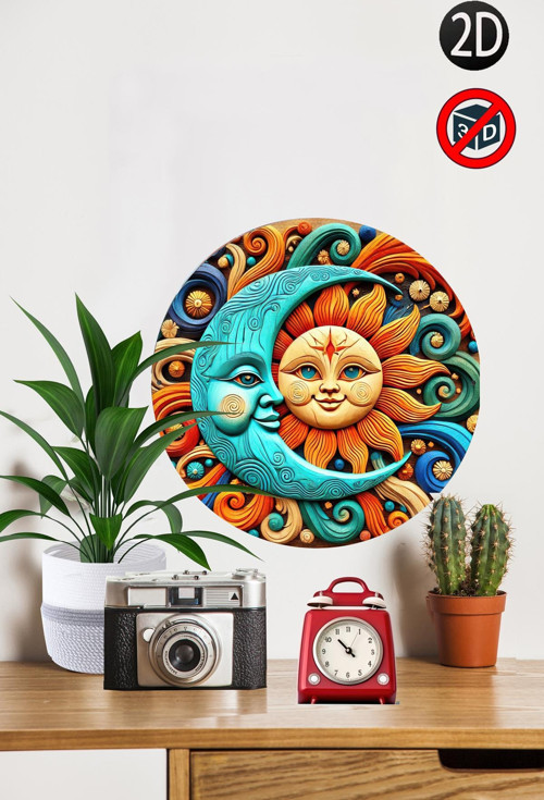 HG Home&Game Ahşap 3D Görünümlü Aygüneş Temalı 28X28 Cm Yuvarlak Ev, Mutfak Duvar Dekoru & Hediye İçin Mükemmel