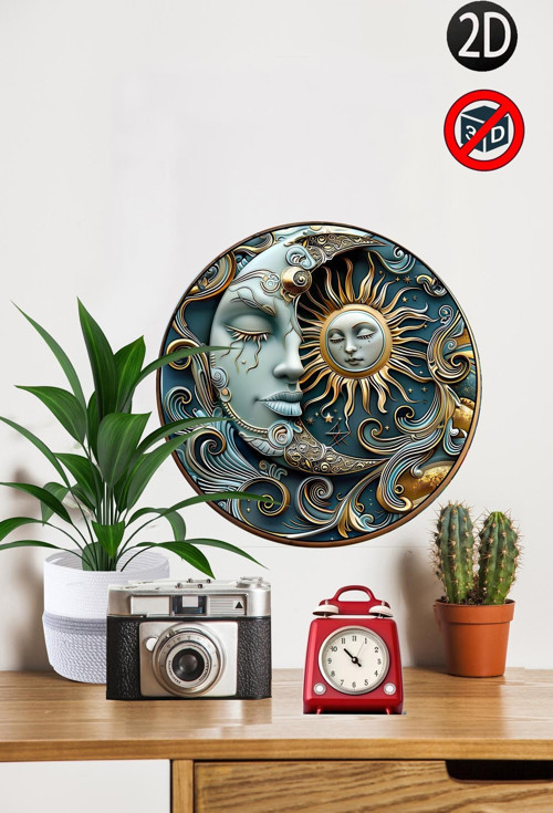 HG Home&Game Ahşap 3D Görünümlü Güneş Ve Ay Temalı 28X28 Cm Yuvarlak Ev, Bahçe Duvar Dekoru & Hediyelik Mükemmel