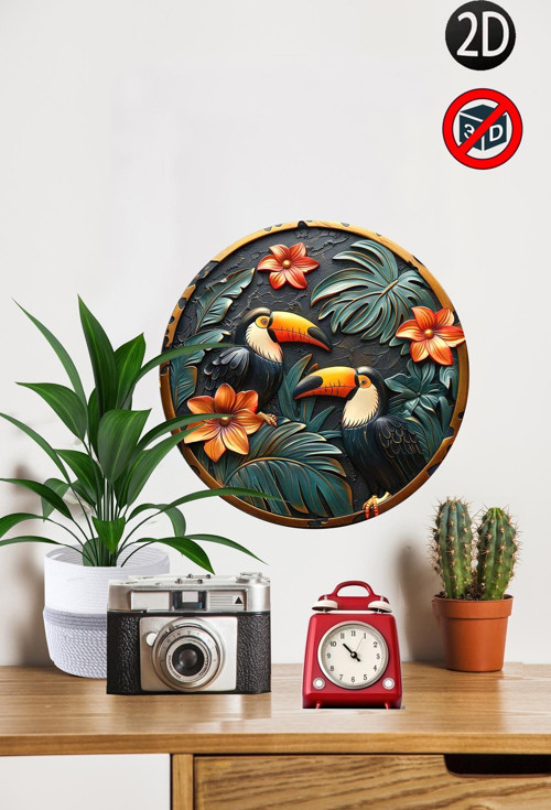 HG Home&Game Ahşap Tukan Temalı 28X28 Cm Yuvarlak Ev, Bahçe Mutfak Duvar Dekoru & Hediye İçin Mükemmel Model03