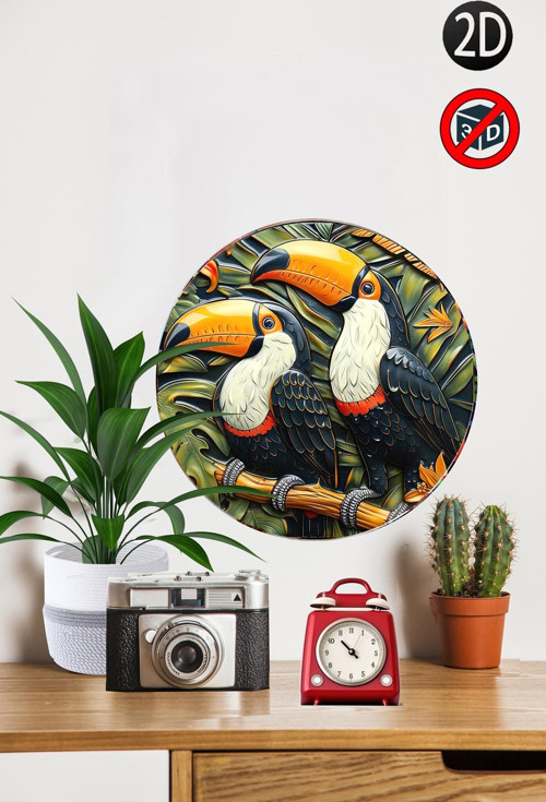 HG Home&Game Ahşap Tukan Temalı 28X28 Cm Yuvarlak Ev, Bahçe Mutfak Duvar Dekoru & Hediye İçin Mükemmel Model10
