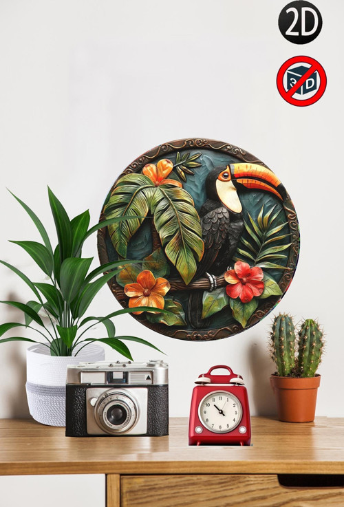 HG Home&Game Ahşap Tukan Temalı 28X28 Cm Yuvarlak Ev, Bahçe Mutfak Duvar Dekoru & Hediye İçin Mükemmel Model12