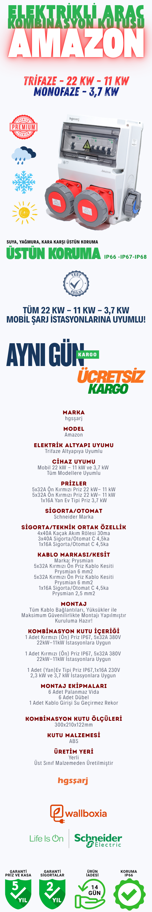 Hgsşarj Amazon Ip66-Ip67-Ip68 Trifaze Elektrikli Araç Kombinasyon Kutusu Schneider Marka Sigorta Grubu