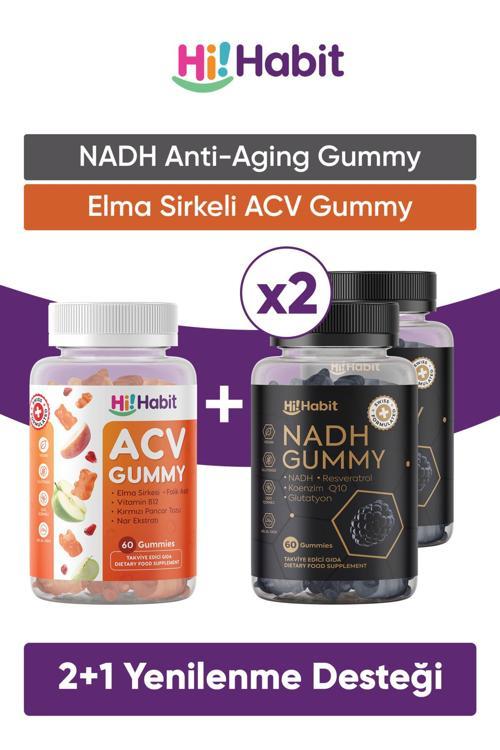 NADH AÇIKLAMA HiHabit NADH Gummy ile Enerjiyi ve Gençliği İçinizden Başlatın! Zamanın izlerini hafifletmek, hücre sağlığını desteklemek ve günlük enerjinizi yükseltmek HiHabit NADH Gummy ile artık çok daha keyifli! Her bir vegan jelibon NADH, Koenzim Q10, Resveratrol, Glutatyon, B6 ve B12 vitaminleriyle zenginleştirilmiş güçlü bir anti-aging formül sunar.