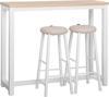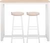 Masa ve tabure tablası yüksek kalite yonga levhadan üretilmiştir. Ayak ve destek parçaları mat beyaz metal yapıya sahiptir. Tüm bileşenler Avrupa Birliği sağlık normlarına uygun E1 sertifikalı malzemeler içerir, zararlı madde bulundurmaz. |