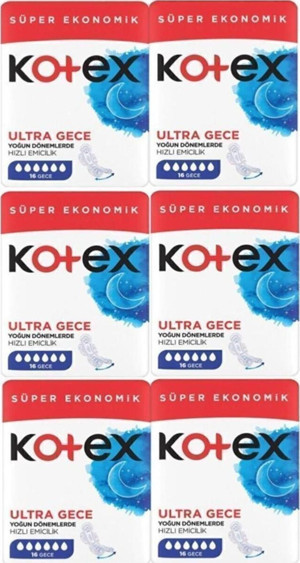 Kotex Ultra Quadro Süper Eko Gece 16 Lı X 6 Adet