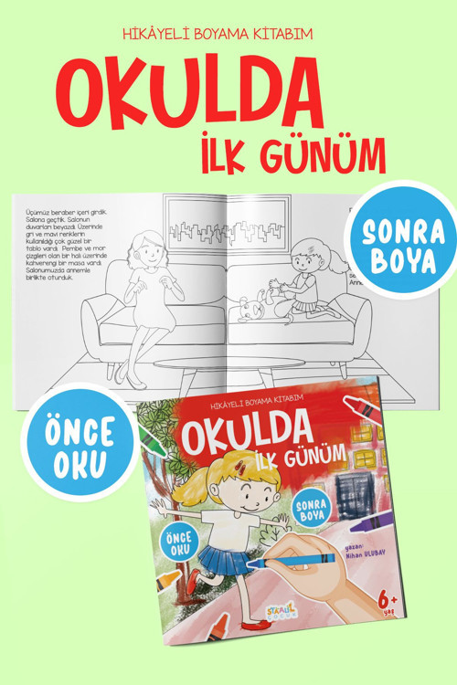 Staau Çocuk Hikayeli Boyama Kitabım - Okulda İlk Günüm (Önce Oku, Sonra Boya - Etkinlikli Boyama Kitabı)
