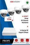 HIKVISION 4 KAMERALI SİSTEM PAKETİ SİSTEM PAKETİ 4 ADET HIKVISION MARKA 2MP IP DOME KAMERA (GECE GÖRÜŞLÜ) + 4 KANAL IP KAYIT CİHAZI KAMERA ÖZELLİKLERİ