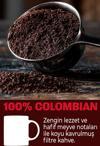 %100 Kolombiya kahvesinin tamamı ile pürüzsüz bir tadı vardır. Zenginliği, cazip tadı, yoğunluğu ve cesur aroması ile kahve tiryakilerini memnun eder.