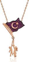 Bayrak; bir milletin varlığının ve bağımsızlığının sembolü, tarihinin hatırasıdır. Bayrağın değeri temsil ettiği milletin kıymeti ile ölçülür. Devletin hakimiyetini, bağımsızlığını ve şerefini temsil ettiği için bayrağa saygı gösterilir. Kırmızı zemin üzerinde hilal ve yıldız bulunan bayrağa efsanevi bir anlam katan inanış vardır. Osmanlıların 1448'de, düşmanlarını ağır bir yenilgiye uğrattığı Kosova savaşından sonraki gece; savaş alanında oluşmuş kan gölünün üzerinde gökyüzünden yansıyan hilal ve yıldız yan yana görünmüştür. Böylece sultan II Murad bu simgeyi devlet bayrakları arasında kullanmaya başlamıştır. Sizde sevdiklerinize gümüş türk bayrağı tutan çocuklar kolyeyi armağan edebilir onları sevindirebilirsiniz. Bayrak tutan çocuklar kolye modeli 925 ayar gümüşten imal edilmiştir. Gümüş üzerine rose kaplama yapılmıştır. Rose kaplama yapılan gümüş kolye modelleri parlaklığını uzun süre muhafaza eder ve oksitlenmesi gecikir. Gümüş kolyenin ortalama boyu 45 cm'dir. Tüm kolye modellerinde olduğu gibi gümüş bayrak tutan çocuklar kolye modeli de el emeği ile üretilmiştir. Gümüş ve değerli taşlar nedeniyle belirtilen ortalama ürün ağırlığında ± %10 sapma olabilmektedir.