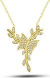 Gümüş Gold Daldaki Kelebek Kadın Kolye