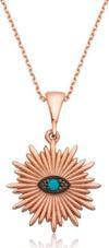 Birçok kültürde kötü enerjinin zararlarından korunmak için çeşitli tılsımlar kullanılmıştır. Doğu kültürlerinin çoğunda kullanılan tılsım ise gözdür. Nazar boncuğu da göz şeklinden ilhamla tasarlanmıştır. Mavi rengin seçilmesi de tesadüf değildir. Renkli gözlü kişilerin enerjisini daha etkili yansıttığı inancı gereği nazar boncukları çoğunlukla mavi olarak tasarlanır. Güzelliğiyle göz kamaştıran, nazardan korunmasını istediğiniz kişilere ve sevdiklerinize gümüş nazar göz kolyeyi armağan edebilirsiniz. Bu nazar göz kolye 925 ayar gümüşten imal edilmiştir. Gümüş üzerine rose kaplama yapılmıştır. Rose kaplama yapılan gümüş kolye modelleri parlaklığını uzun süre muhafaza eder ve oksitlenmesi gecikir. Kolye üzerinde bulunan göz firuze taştan oluşmaktadır. Bu nazar göz kolye modeli diğer tüm gümüş kolye modellerinde olduğu gibi el emeği ile üretilmiştir. Gümüş ve değerli taşlar nedeniyle belirtilen ürün ağırlığında ± %10 sapma olabilmektedir.