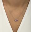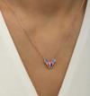 Özgürlüğü masumiyeti ve saflığı simgeleyen kelebekler, tertemiz sevginin ve aşkın ifadesidir. Bahar kelebekleri kolye anlam itibari ile aşkın küçük bir kıvılcım ile başladığı daha sonra büyük bir sabır ile büyüdüğü ve en sonunda ilan-ı aşkı ifade eder. Sizin olduğu kadar sevdiklerinizin de keyifle takacağı minimal kelebek bayan kolye en güzel hediyelerden biri olacaktır. Kolye 925 ayar gümüşten imal edilmiştir. Gümüş üzerine rose kaplama yapılmıştır. Rose kaplama yapılan gümüş bayan kolyeler parlaklığını uzun süre muhafaza eder, ve oksitlenmeyi geciktirir. Kolye üzerinde bulunan renkler mine işlemesidir. Gümüş olan zincir boyu ortalama 45 cm'dir. Tüm gümüş kolyelerde olduğu gibi gümüş minimal kelebek kolye de el emeği ile üretilmiştir. Gümüş ve değerli taşlar nedeniyle belirtilen ürün ağırlığında ± %10 sapma olabilmektedir.
