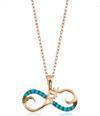 Sevgilinize sonsuz aşkı ifade etmenin en güzel ve en anlamlı yollarından biri sonsuzluk kolyesidir. Şık tasarım olan özel kolye ile sevdiğinize olan sonsuz aşkınızı ifade edebilir, sonsuza kadar birlikte olacağınız mesajı verebilirsiniz. Bu mükemmel kolye; 925 ayar gümüşten imal edilmiştir. Gümüş kolye üzerine rose kaplama yapılmıştır. Rose kaplama yapılan kolyeler parlaklığını uzun süre muhafaza eder, gümüş rengini pembe renge dönüştürür ve oksitlenmeyi geciktirir. Zincir boyu ortalama 45 cm'dir. Tüm gümüş kolyelerde olduğu gibi bu gümüş sonsuz aşk kolye de tamamı el emeği ile üretilmiştir. Kolye üzerindeki taşlar firuzedir. Gümüş ve değerli taşlar nedeniyle belirtilen ortalama ürün ağırlığında ± %10 sapma olabilmektedir.