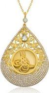 Tuğra, Osmanlı sultanlarının imzası anlamına gelir. Her tuğra; ona ait olan padişahın ismini, varlığını, hükümdarlığını ifade eder. Tuğra sembolü her padişaha göre farklı olmak üzere birçok şekilde günümüze ulaşmıştır. Tuğra Osmanlının her döneminde korunmuş, önemini hiç kaybetmemiştir. Ve zamanla hat sanatımızda da önemli bir yere sahip olup, günümüzde hattatlar tarafından sanatsal olarak yaşatılmaktadır. Bu mükemmel kolyeyi; doğum günü hediyesi, sevgililer günü hediyesi veya annelere hediye olarak özel günlerde tercih edebilirsiniz. Tuğra kolye 925 ayar gümüşten imal edilmiştir. Gümüş üzerine altın kaplama yapılmıştır. Altın kaplama yapılan kolye modelleri parlaklığını uzun süre muhafaza eder, gümüş rengini sarı renge dönüştürür ve oksitlenmeyi geciktirir. Üzerinde bulunan beyaz taşlar zirkondur. Zincir uzunluğu 50 - 55 cm'dir. Tüm gümüş kolyelerde olduğu gibi gümüş tuğra kolye modeli de el emeği ile üretilmiştir. Gümüş ve değerli taşlar nedeniyle belirtilen ortalama ürün ağırlığında ± %10 sapma olabilmektedir.